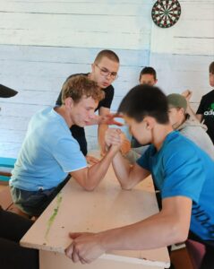 🎨 Потом начались мастер-классы от самих ребят: кто-то учил танцевать, кто-то показывал, как рисовать , а самые активные бросили вызов в спортивных челленджах.(волейбол, армрестлинг, обручи и скакалки)